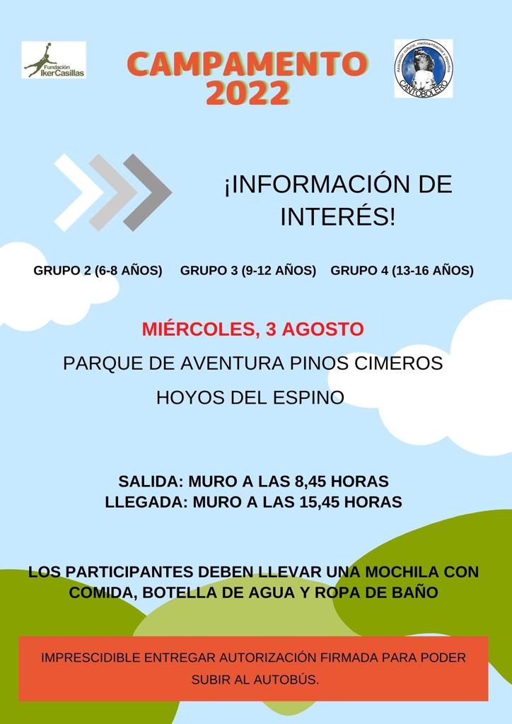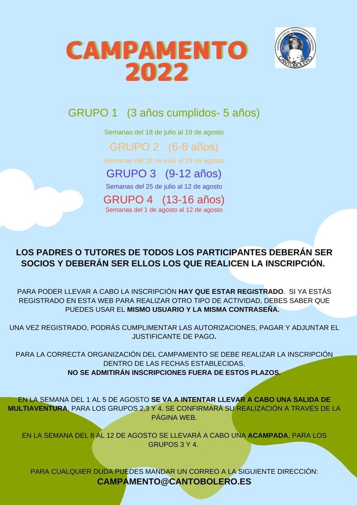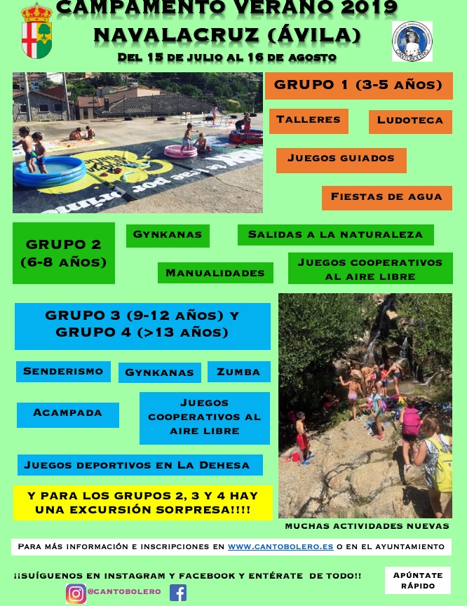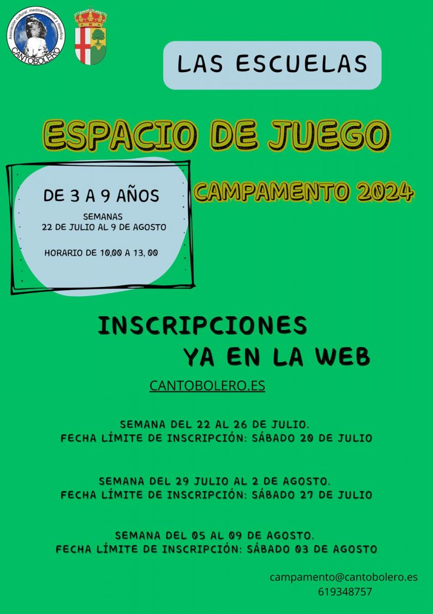 (FIN DEL PLAZO DE INSCRIPCIÓN: 7 dias antes del inicio de la primera semana en la que se desee participar en la actividad. Ej. Si se iniciar el campamento la semana del 11 de Julio la fecha tope de entrega de la inscripción en el ayuntamiento sería el lunes 4 de Julio)