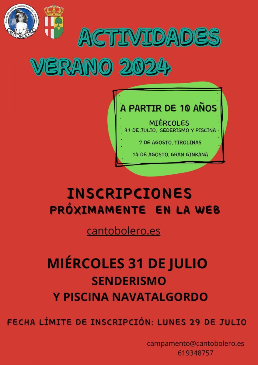 (FIN DEL PLAZO DE INSCRIPCIÓN: 7 dias antes del inicio de la primera semana en la que se desee participar en la actividad. Ej. Si se iniciar el campamento la semana del 11 de Julio la fecha tope de entrega de la inscripción en el ayuntamiento sería el lunes 4 de Julio)