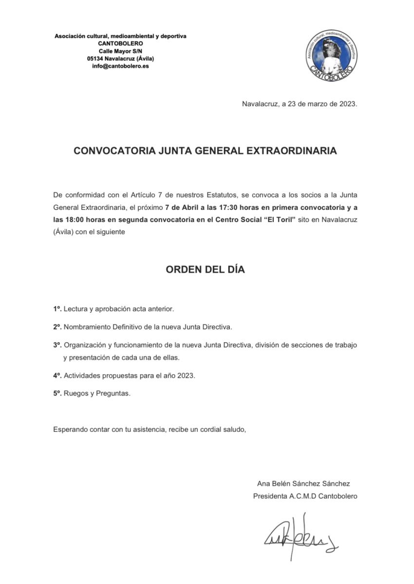 La junta general de socios será el día 30 de diciembre a las 20:00 horas en el toril.